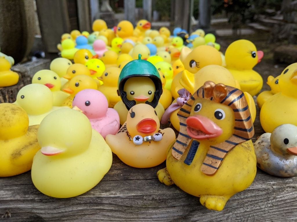 〇フラックのアヒルもいるし、白いのもいるし、黄色以外のアヒルちゃんもいて、